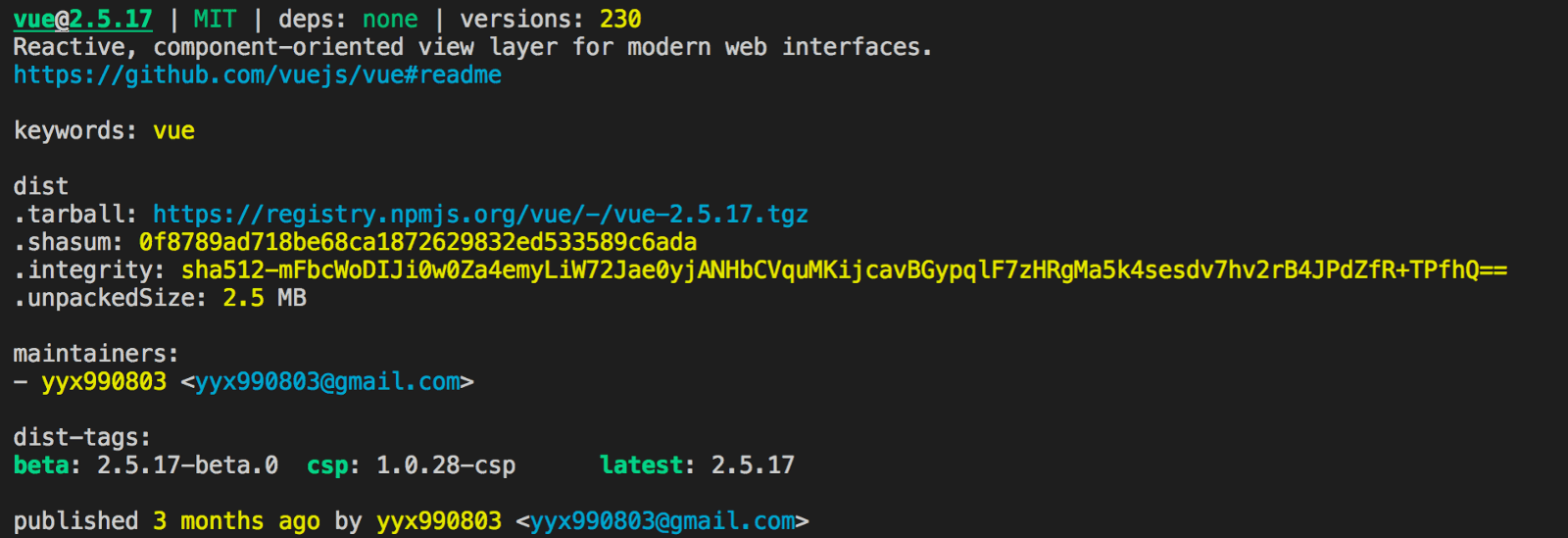 npm view vue или npm v vue